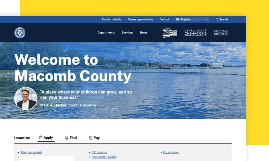 Home to almost a million people, Macomb County is the third largest in Michigan. With the ever-increasing public demand for online services, the County’s flagship website, macombgov.org, needed a redesign to enhance user experience, speed up mobile interactions and meet new federal standards for accessibility.